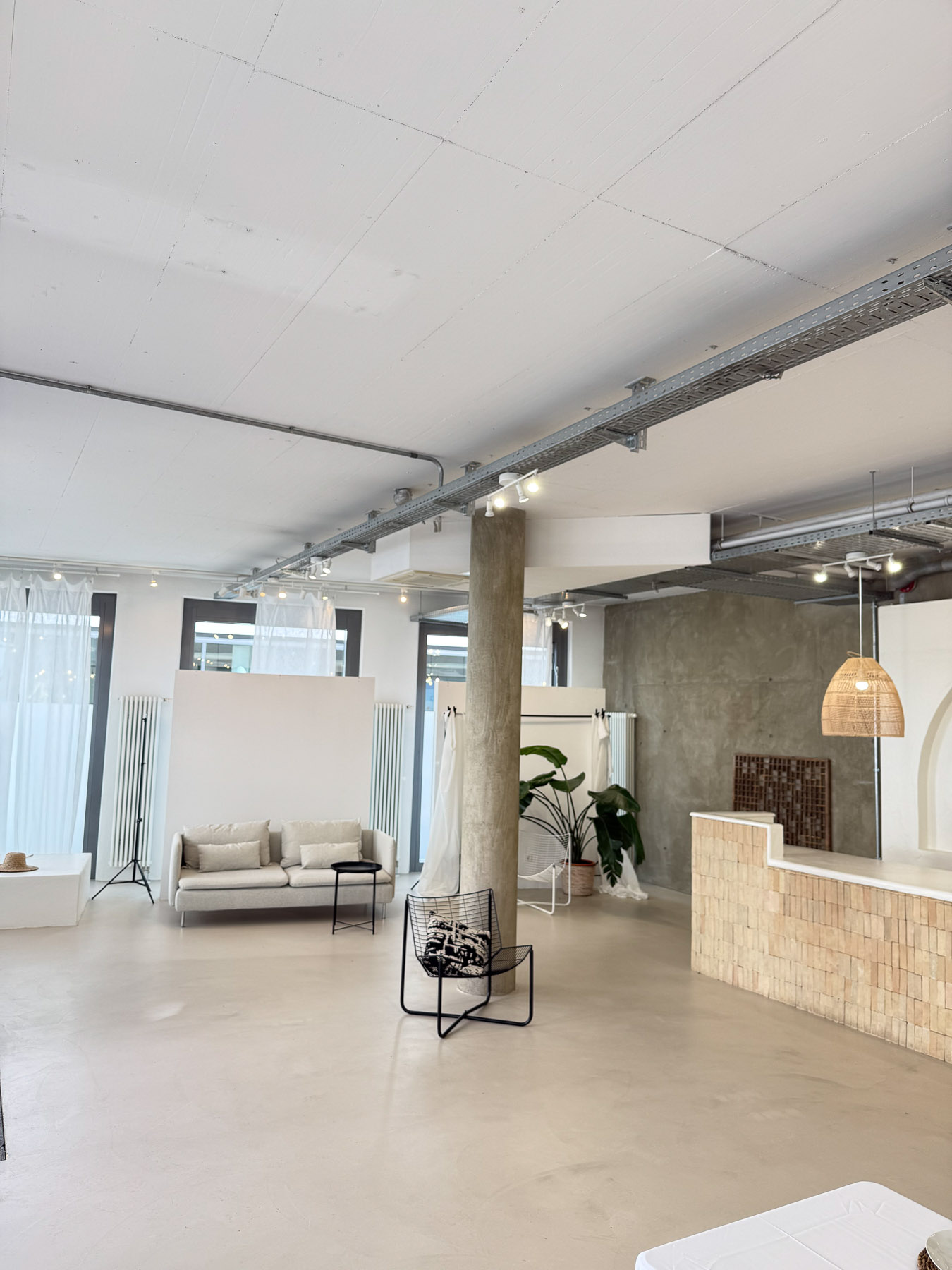 Auf 150 Quadratmetern verbinden sich natürliches Tageslicht, klare Architektur und eine minimalistische, warme Ästhetik zu einer Umgebung, die bewusst reduziert ist – damit deine Ideen im Mittelpunkt stehen.